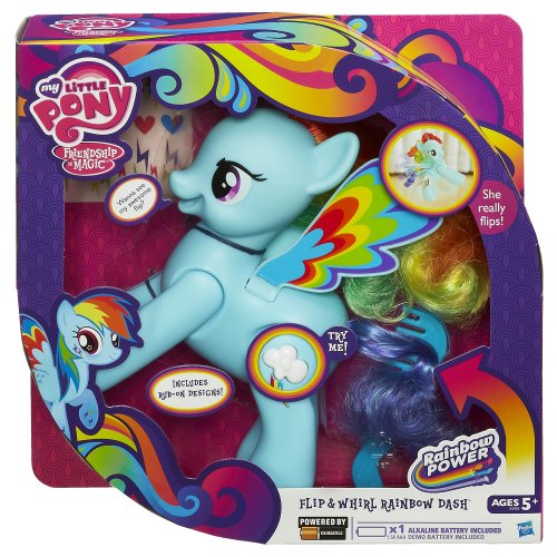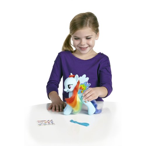 -. Feature : Rainbow Dash figure can do a special trick / Sit her down, then watch her flip / Pony figure lands on her feet / Includes rub-on design sheet to decorate her / Includes pony figure, comb and rub-on design sheet