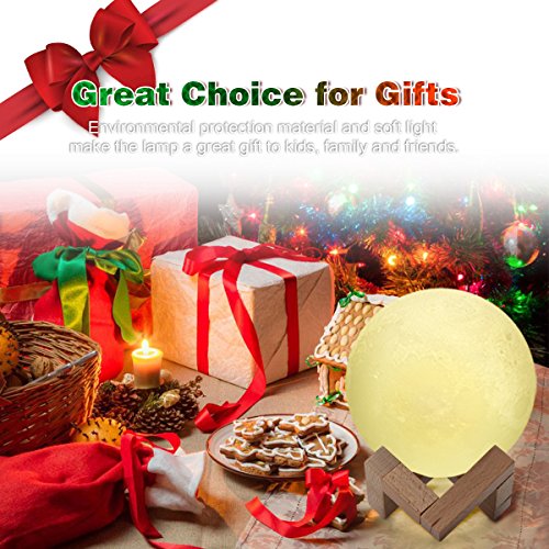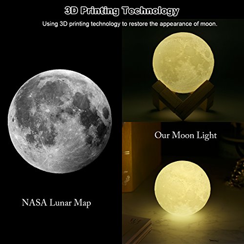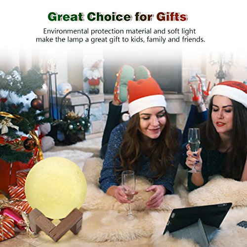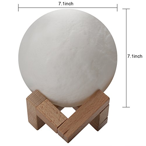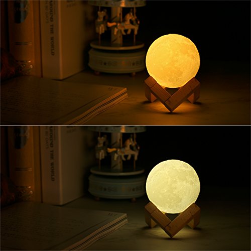 SIMPLE OPERATION: Touch the metal ring to switch the color and turn off the light, and touch more than 1 second to adjust the brightness of moon lamp