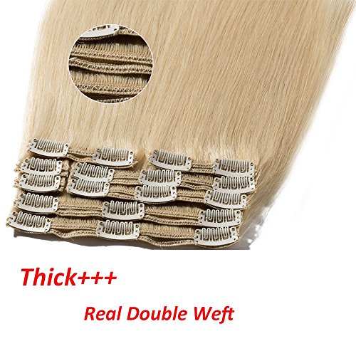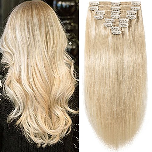 s-noilite 10"-22" Thick Double Weft 130-160g Grade 7A 100% Clip in Remy Human Hair Extensions Full Head 8 Piece (16"-130g #60 Platinum Blonde)