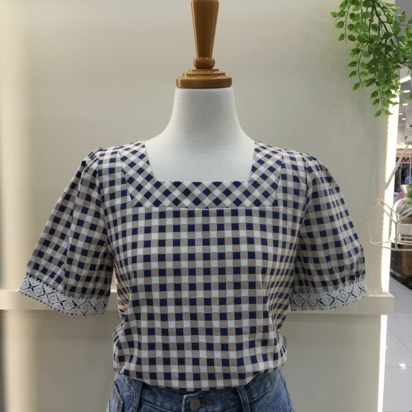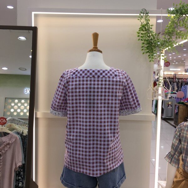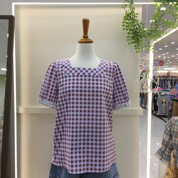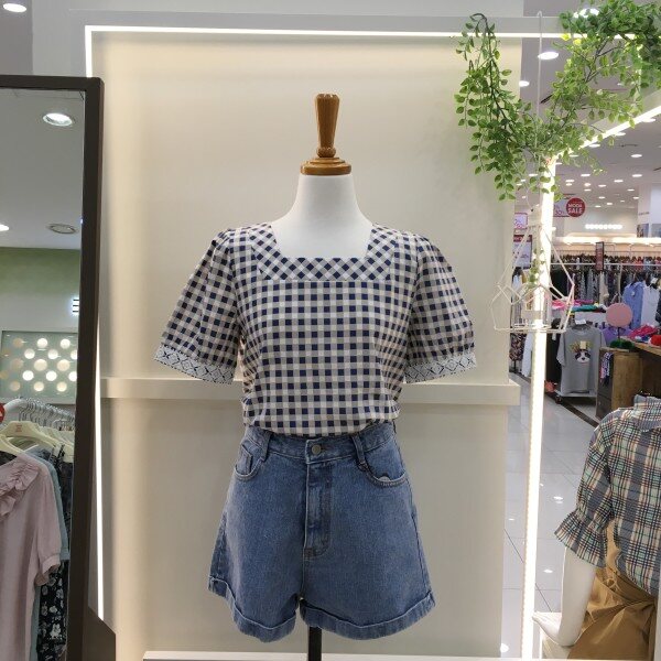 요즘 유행인 스퀘어 넥라인의 블라우스입니다:) 이런 스퀘어라인의 상의는 목라인이 길어보이고 자연스럽게 쇄골라인이 드러나기 때문에 우아하고 여성스러움이 큰 장점인데요, 여기에 팔소매 자수로 포인트 주어 밋밋해보이지 않는 블라우스입니다.
