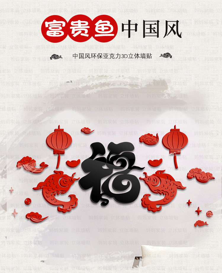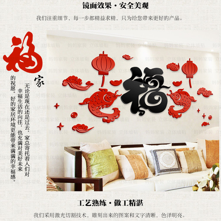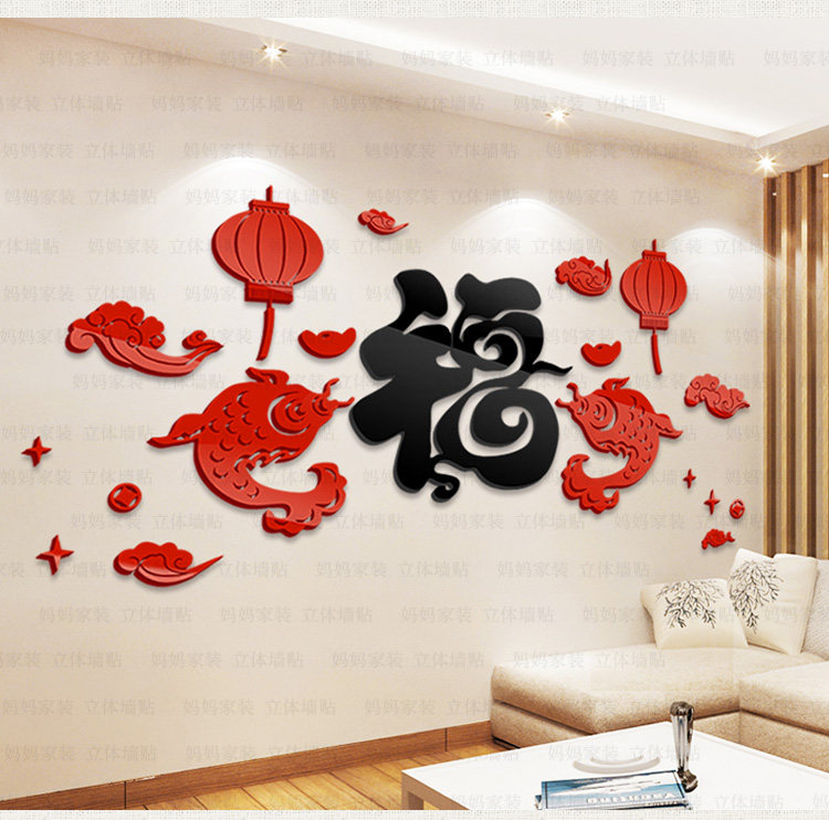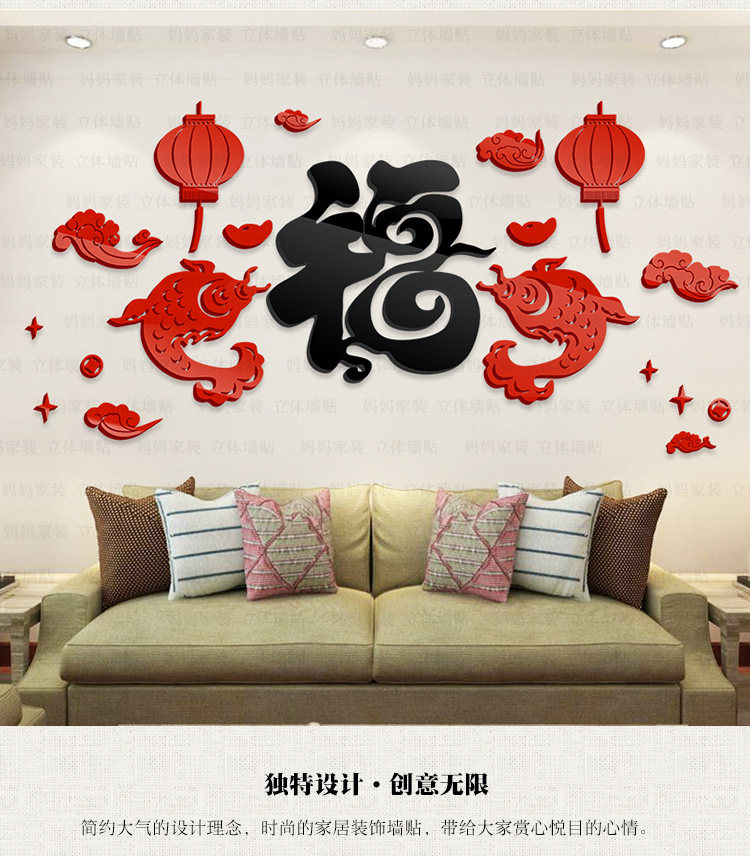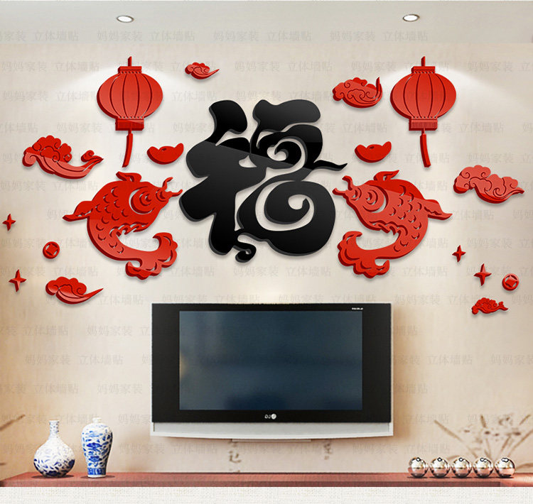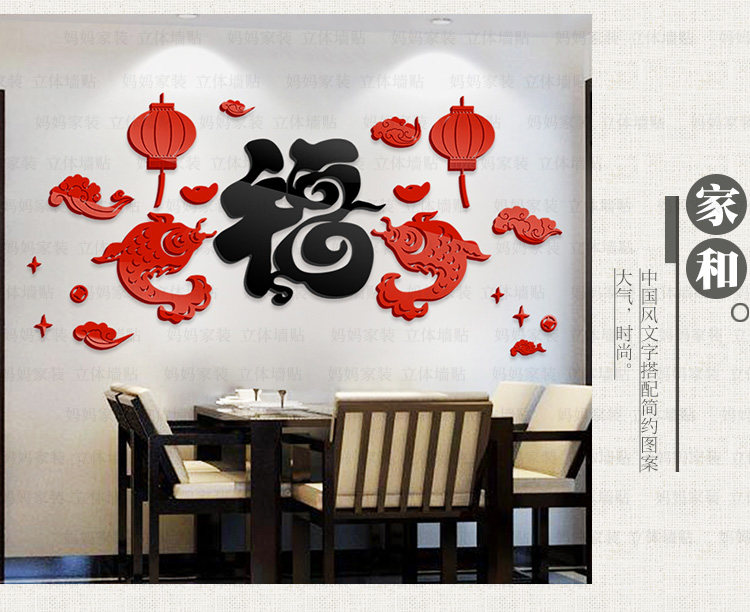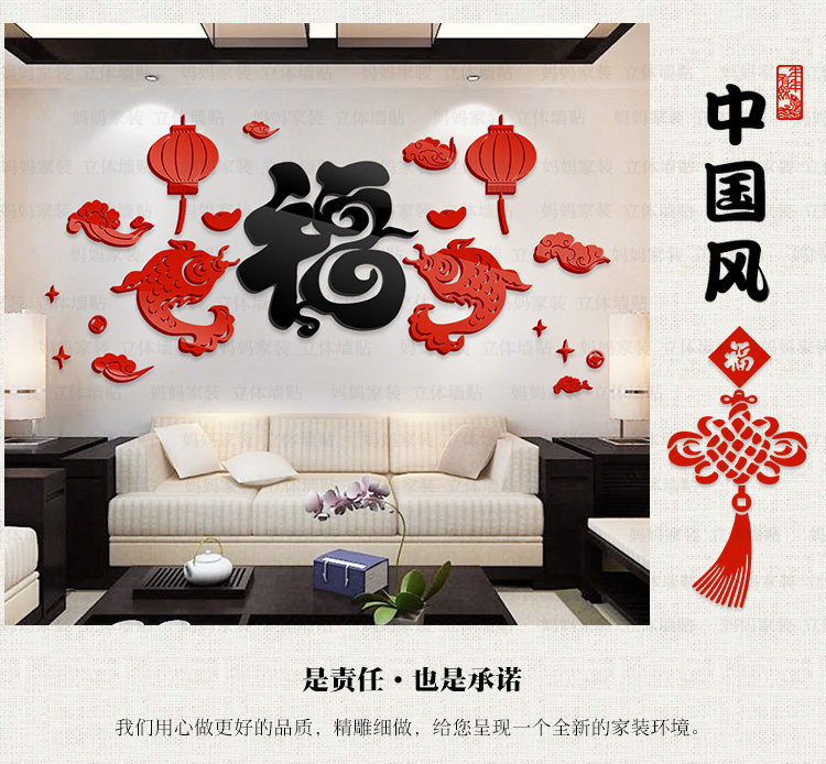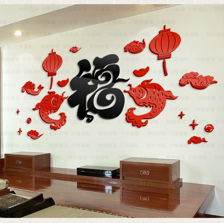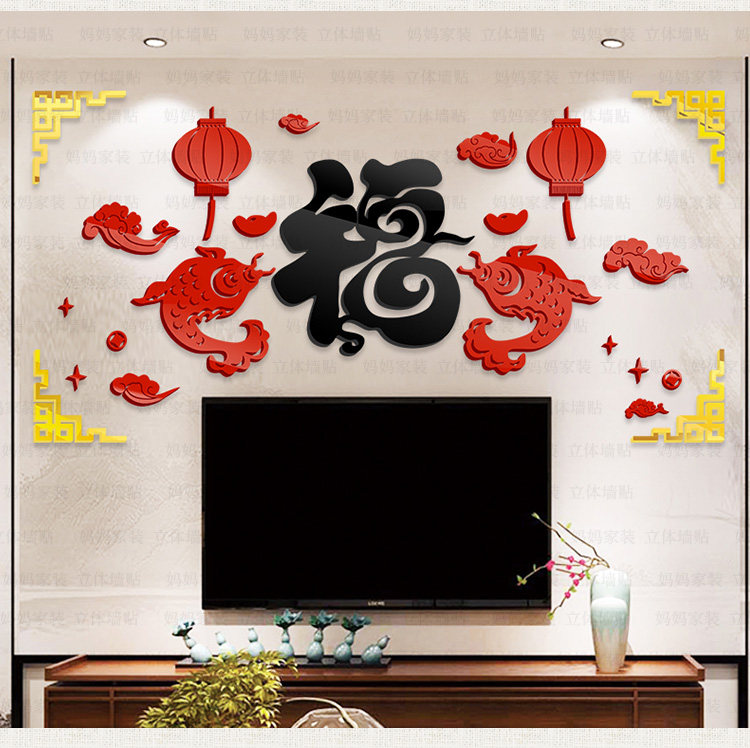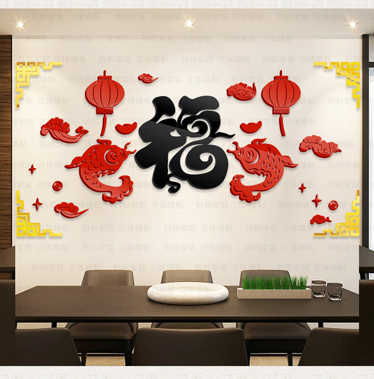 客厅沙发背景装饰墙贴中国风贴画餐厅电视墙布置3d亚克力立体墙贴