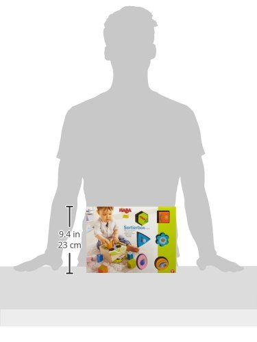- The big wooden pieces stimulate the curiosity of little ones, foster their senses and train motor skills. The different templates will keep this sorting toy fun and fresh.