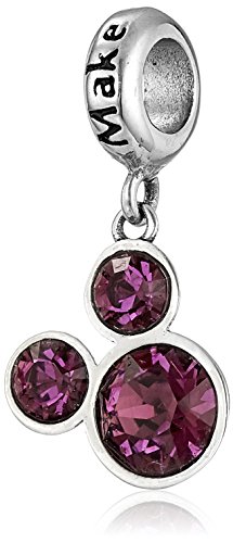 Disney Stainless Steel Mickey February Birthstone "Magic Happens" Bead Charm