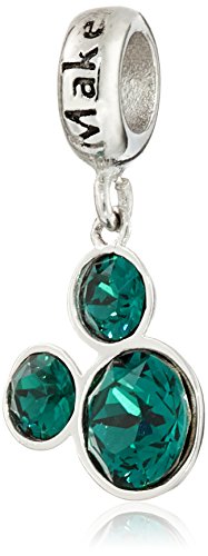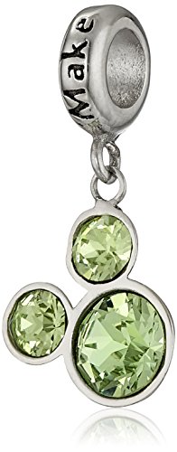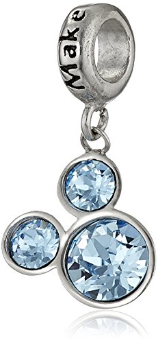 Charm: 0.92"H x 0.47"W; Stainless steel charm featuring Mickey Mouse simulated birthstone suspended from ring engraved with "Make Magic"