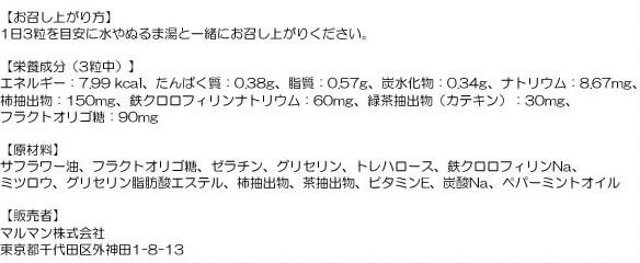 | 仕様 | 商品区分:健康食品 名称:柿抽出物含有食品 保存方法:直射日光や湿気の多いところを避け、涼しいところに保存してください。 販売者:マルマン(株) 東京都千代田区外神田1-8-13 賞味期限:製造日より30ヶ月(未開封時) |