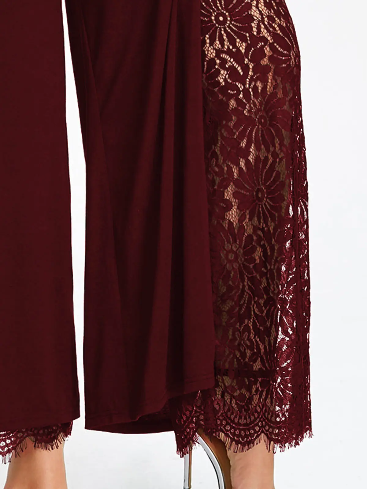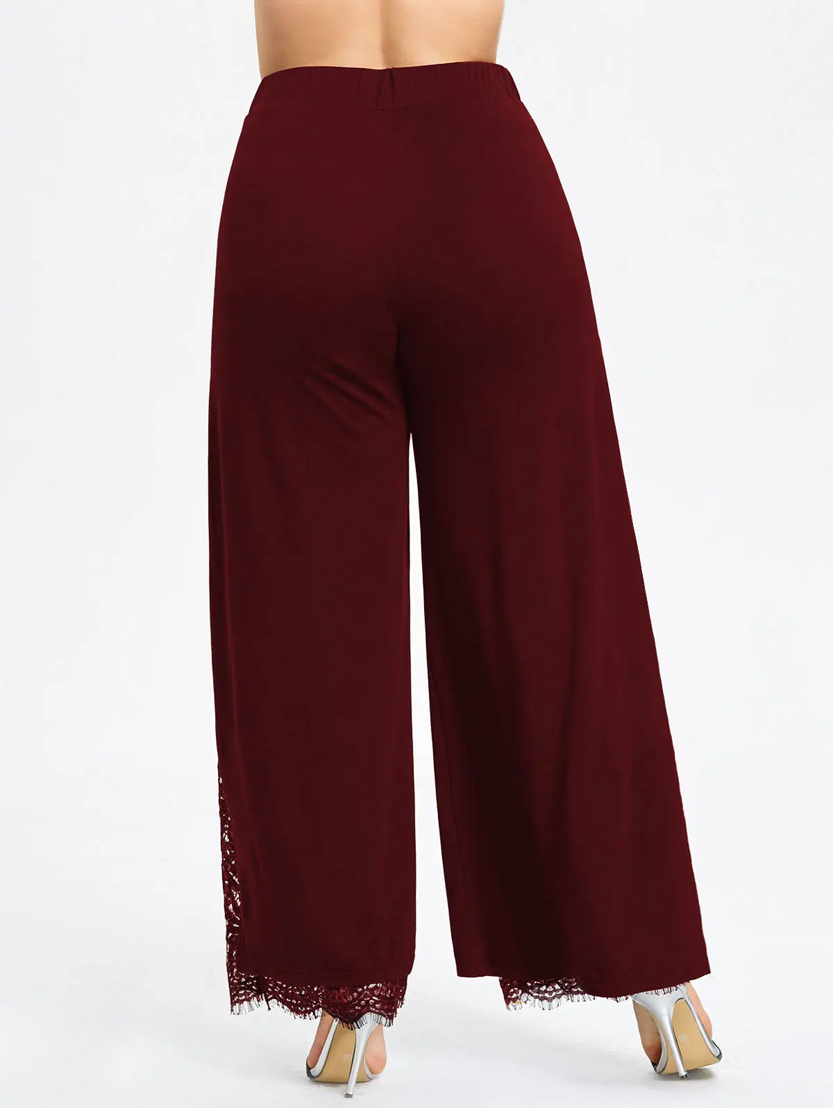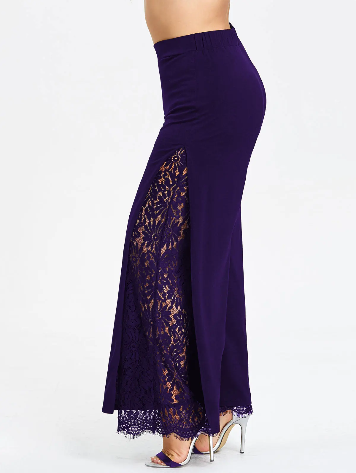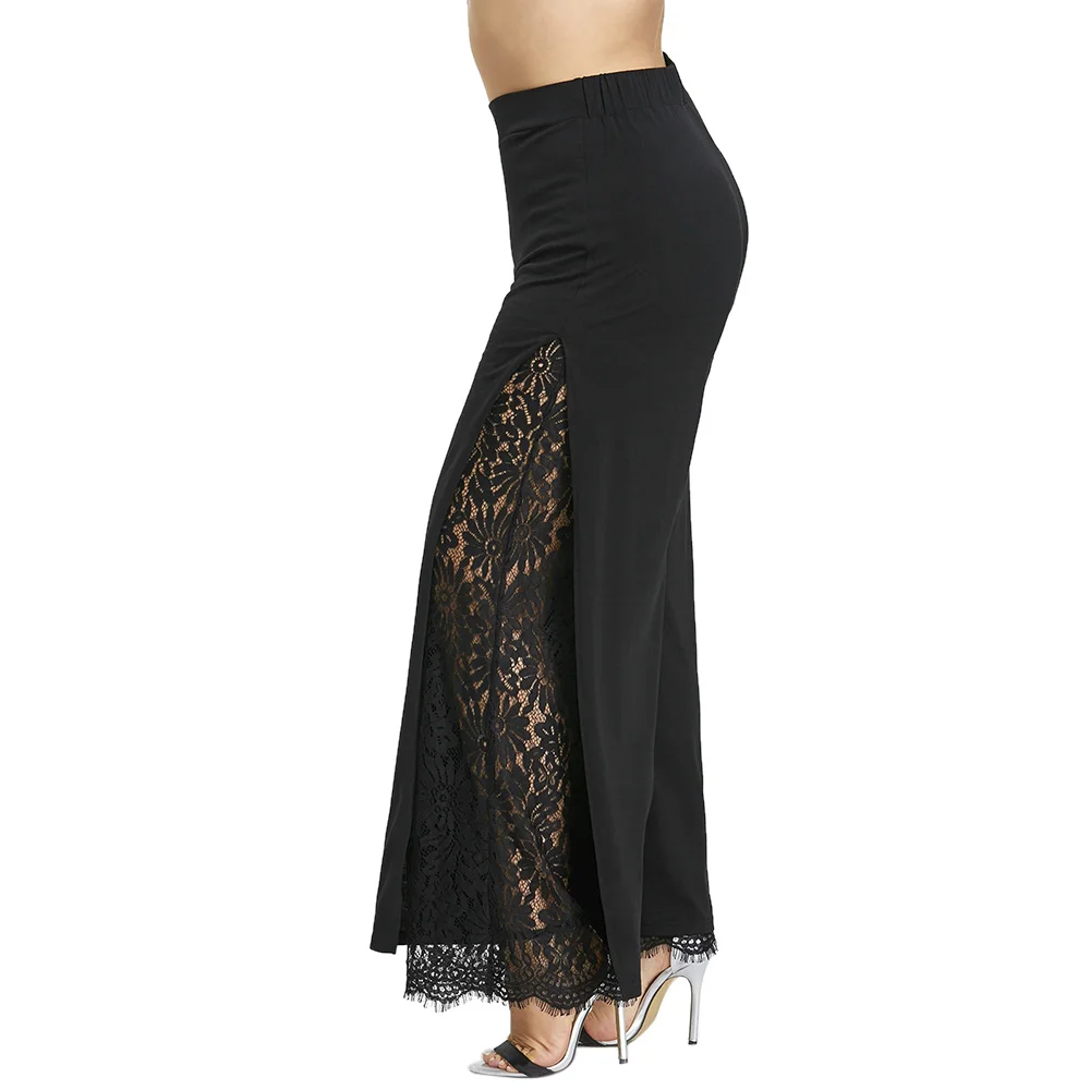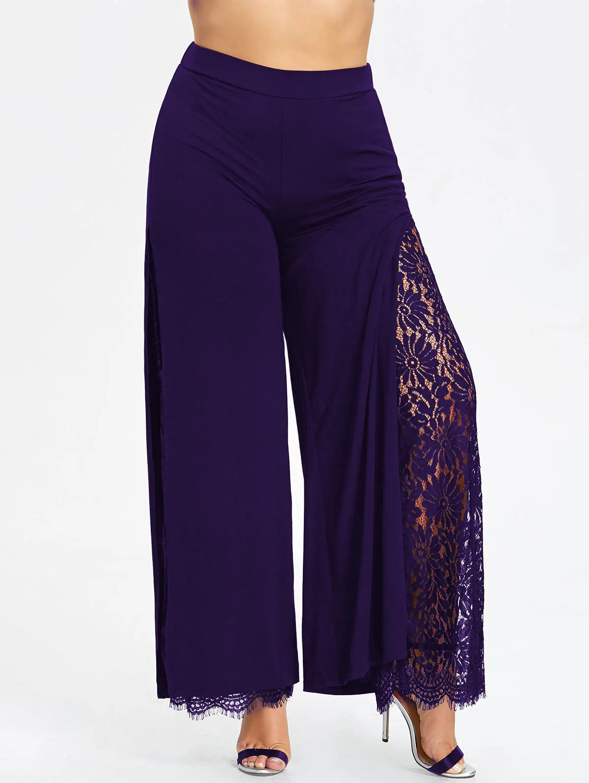 Model Number:Plus Size High Slit Lace Palazzo Pants