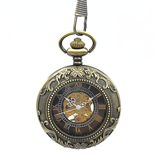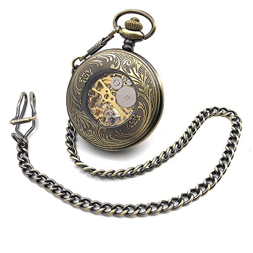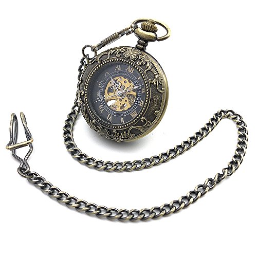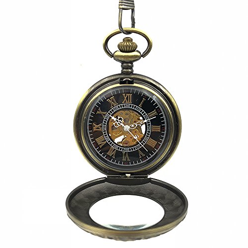 -. Title : Steampunk Mechanical Hand Wind Pocket Watches Mens Bronze Tone Skeleton Dial Transparent Retro Pocket & Fob Watch w/ Chain Gift