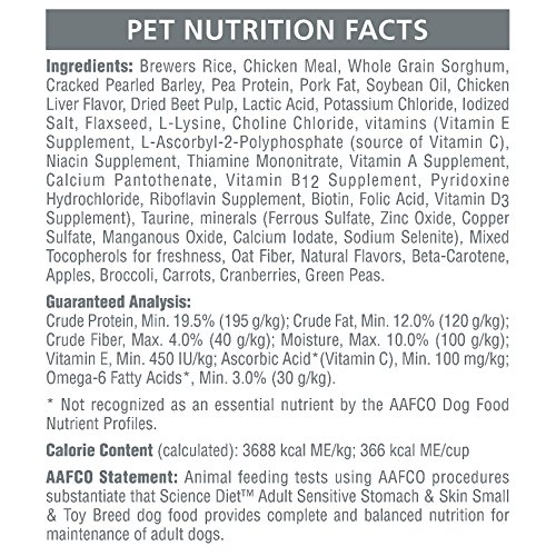 -. Binding : Misc. -. Brand : Hill's Science Diet -. Feature : Reduced calories helps maintain a healthy weight / L-carnitine for lean muscle and ideal body weight / High fiber helps control hunger between meals / High quality ingredients for the best taste ever / Vitamin c + e for a healthy immune function -. Label : Hill's Pet Nutrition -. Manufacturer : Hill's Pet Nutrition -. Model : 8530-PARENT -. MPN : 8530-PARENT -. PackageQuantity : 1 -. PartNumber : 8530-PARENT -. ProductGroup : Pet Products -. ProductTypeName : PET_SUPPLIES -. Publisher : Hill's Pet Nutrition -. Size : lb -. Studio : Hill's Pet Nutrition -. Title : Hill's Science Diet Adult Sensitive Stomach & Skin Dry Dog Food