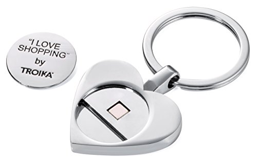 Keyring with token for shopping trolleyhearttoken magnetically attached to the backmetalmulticolouredchrome plated