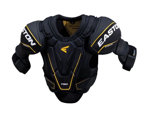 Studio : Easton Publisher : Easton Binding : Misc. Product Description The Stealth 75S shoulder pads have been redesigned with the Stealth black and yellow look. This shoulder pad features high density and mid density foams to balance high levels of protection and maximum freedom of movement. This shoulder pad comes with segmented Free Range of Motion adjustable HDPE bicep protectors to extend the coverage of the shoulder pad down the arm to the elbow pad. This shoulder pad offers solid sternum and clavicle protection as well. The 75S II's feature a 3-piece front and back panel design allowing the shoulder pads to adjust and move with you. EASTON SHOULDER PAD SIZING CHART JUNIOR SIZE HEIGHT SMALL 4'0" - 4'10" MEDIUM 4'8" - 5'4" LARGE 4'10" - 5'6" 0