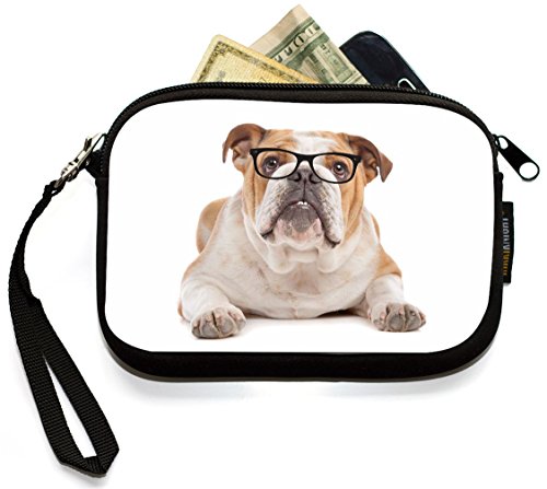 -. Title : UKBK Hipster English Bulldog with Glasses Neoprene Clutch Wristlet