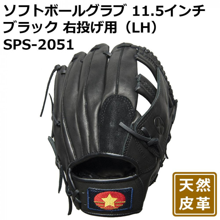 右投げ用のソフトボールグラブです。 製造国:中国 素材・材質:天然皮革 商品サイズ:11.5インチ 仕様:ウェーブ:CTウェーブ ※サプライヤー直送品 ご注文後3~4営業日後の出荷となります【商品名】ソフトボールグラブ 11.5インチ ブラック 右投げ用(LH) SPS-2051