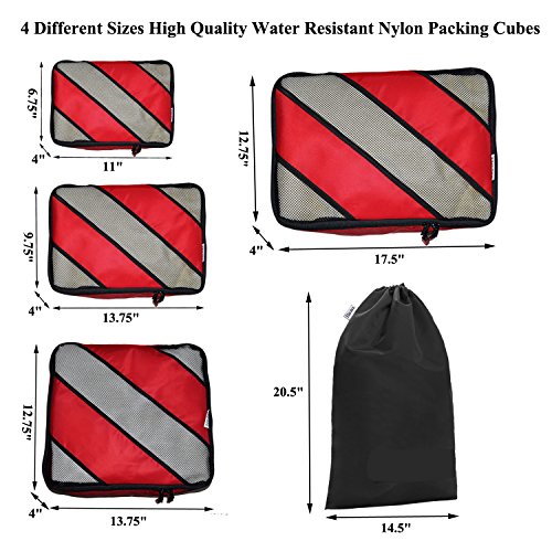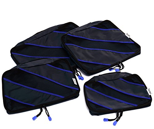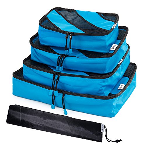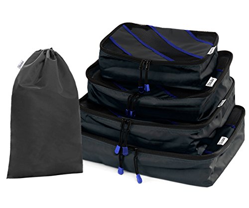 Pack More Clothes in a Small Space For Your Next Trip - Made From High Quality Water Resistant Nylon Material to Withstand the Wear and Tear of Traveling. - Zipper closure and Double zipper pulls make opening/closing simple and fast. - 4 inch Deep Design Allows You to Fit All The Clothes You Need into Our Bags. - Laundry Bag Included to Help Separate your Dirty Clothes At The End of The Trip. - 4 piece set fits like a glove into most airline carry-on suitcases, tote, weekender, backpacks and duffel bags. Great way to keep organized for FAMILY breaks, BUSINESS travel, BACKPACKING, CAMPING, HIKING, RV, CRUISE holidays SADDLEBAGS. Take 1 cube with you as a carry-on item to reduce weight on checked-in luggage. HoJax Packing Cubes Included - 4 Packing Cubes -Extra Large( 17.5"" x 12.75"" x 4"") Large (13.75"" x 12.75"" x 4"") Medium (13.75x9.75x4) Small (11"" x 6.75"" x 4""). - Laundry Bag for storing dirty clothes at the end of your travels.