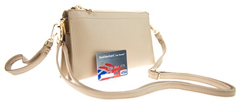 -. Feature : Design: High quality classic expandable slim wristlet. Zip-top closure: 3 main compartments; 2 slip pockets; 3 credit card slots. / Material: Faux leather,solid-colored fabric lining, gold-tone hardware. / Accessories: this clutch comes with 1 detachable crossbody strap adjustable up to 55 inches, 1 detachable 8.5 inches wrist strap. / Dimensions: 5.5"H x 9.5"L x 2.5"W / Origin: Made in China