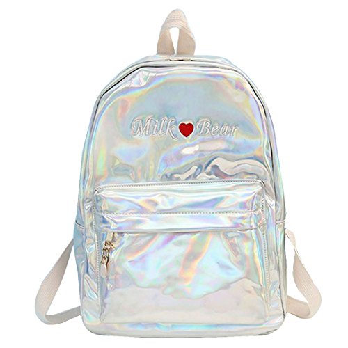 -. Title : Orfila Hologram Laser Backpack PU Leather Casual Daypack Love Heart School Bookbag Fashion Travel Satchel Shoulder Bag