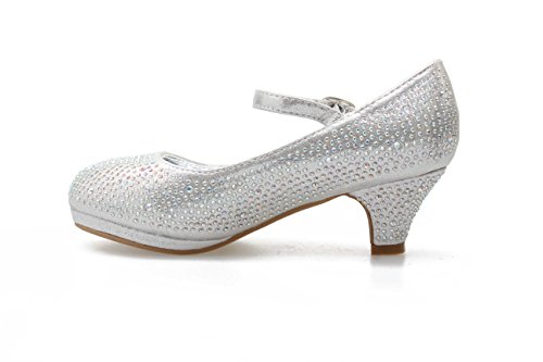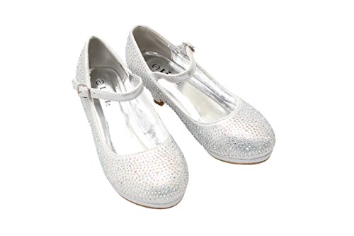 -. Feature : All Man Made / Synthetic / Heel Height: 1.5" heel (Approximately) / Size: JR/ Youth/Little girls sizes : 9~4 / Embellished Rhinestone