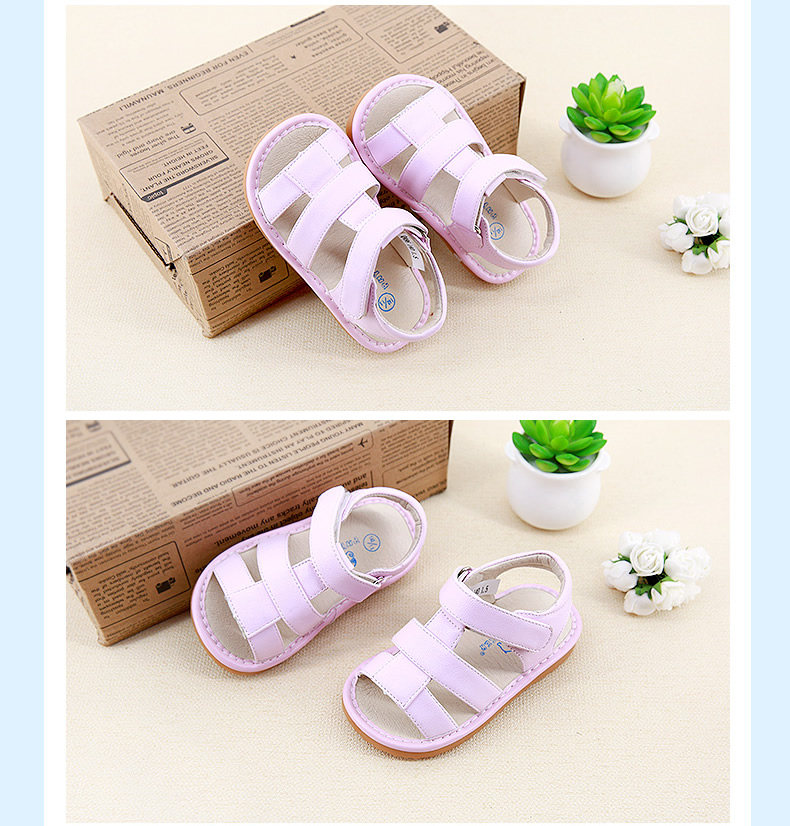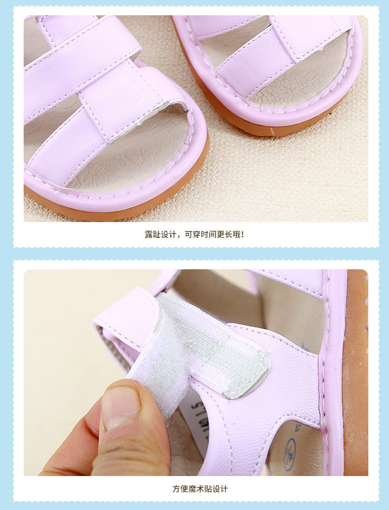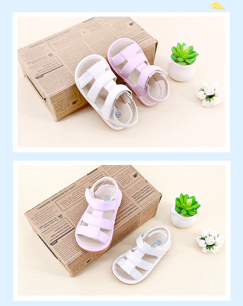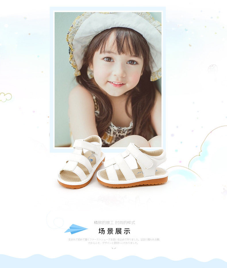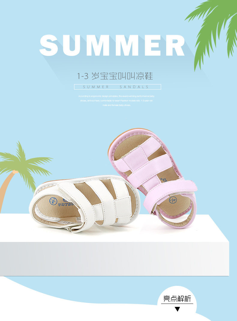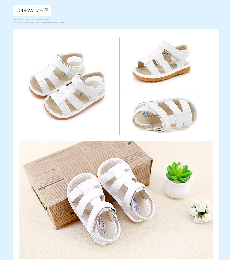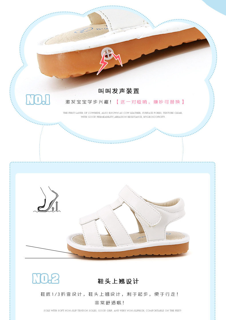 夏季新款菲尼尔纯色女宝宝学步鞋白色女童凉鞋叫叫鞋公主鞋
