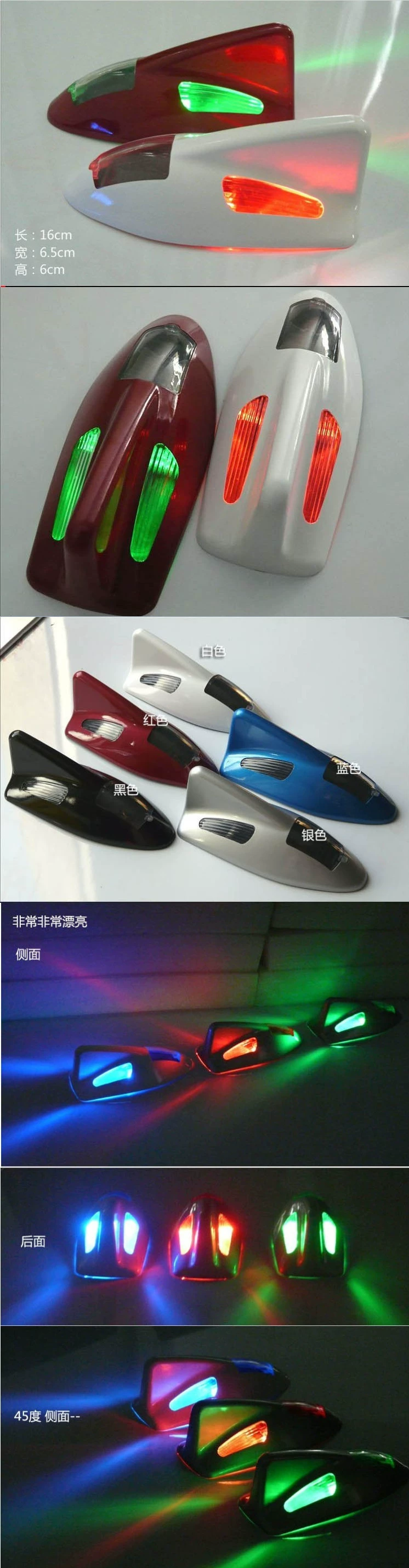 This product does not have a radio antenna function, please buyers know!Note:1, please check the product before installation, without any problems then installed.2, the product is controlled by light and vibration sensors, and shake in low light environments flashes themselves, in the light automatically turns off (or will self-extinguish after a standstill for two minutes).Please look on the dark and under shock flashing check whether this product, if not blink you might protect the chip. The tail in the sun or under the lights will shine again a test.Main functions:1, lower drag coefficient, in addition to static function2, anti-rear-end functionCatamaran combination, triple waterproof design: product features vacuum layer, chute, triple-layer waterproof stickersCar headlights dual translucent designLocation brightening condenser translucent strip: This lens is designed to be similar to LED lights round spot growing pull strip into segments, namely increasing the brightness of the warning, but also to ensure that after the truck driver near non-glare lighting, avoid after the truck driver and unnecessary disputes.Product Dimensions: Length 16CM, width 6.5CM, high 6CM