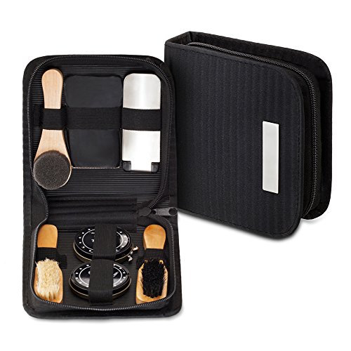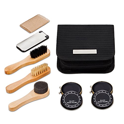 Inside Kit: 2 x Shoe Polish (Black) 1 x Brush to clean shoes 1 x Brush to apply polish 1 x Shine Cloth 1 X Metal shoe horn 1 x Brush to buff shoes after polish has dried
