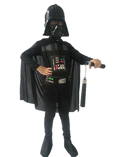 -. Brand : Moonie -. Color : Black -. Department : boys -. Feature : Including: one-piece jumpsuit, detachable cape, waistband, simple mask (size for adult) / Materials: cotton, linen / This item is NOT muscle design. / Note: please check the Size Chart in the pictures or description before you order. / There are cool Star Wars costume accessories such as mask with LED light for children on our store, you can enter the store to select. -. Label : WZ -. Manufacturer : WZ -. ProductGroup : Apparel -. ProductTypeName : CHILDRENS_COSTUME -. Publisher : WZ -. Studio : WZ -. Title : Star Wars Child's Darth Vader Costume and Mask