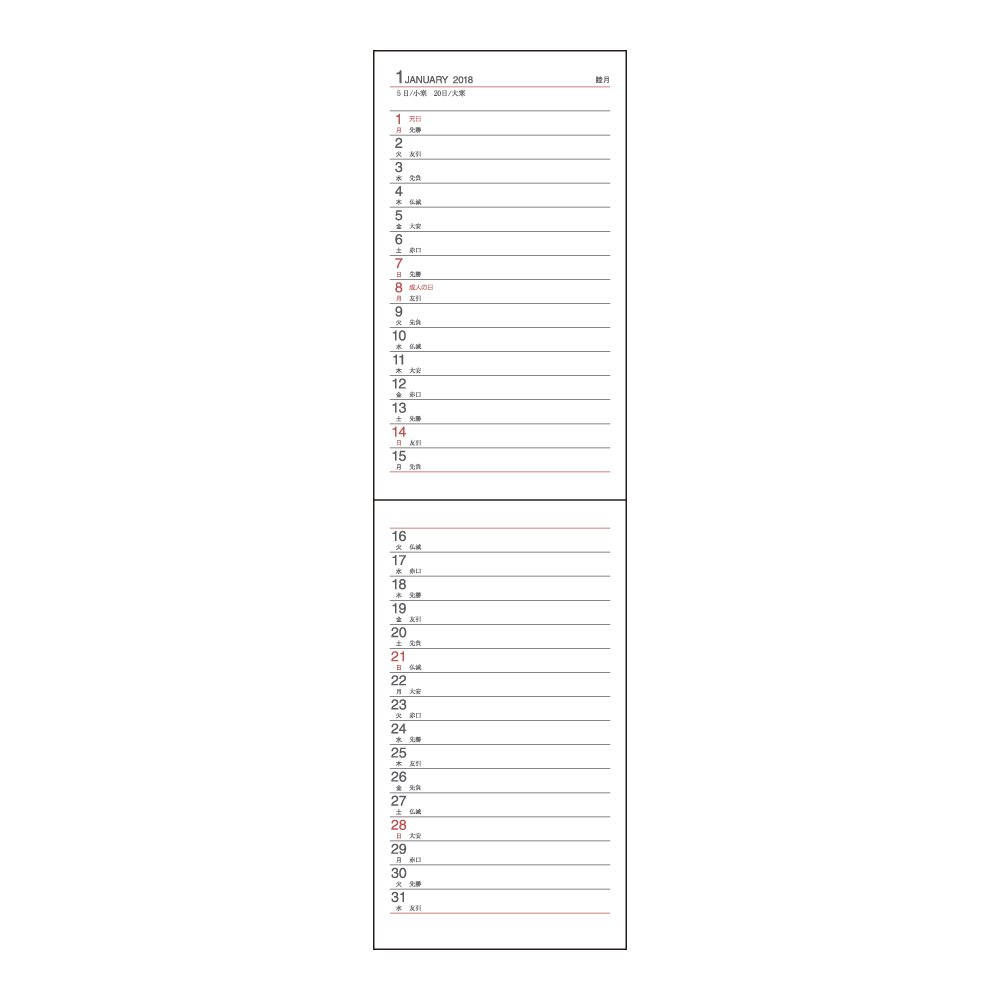 The monthly schedule is a simple horizontal rule type calendar, making continuous schedule easier to grasp.