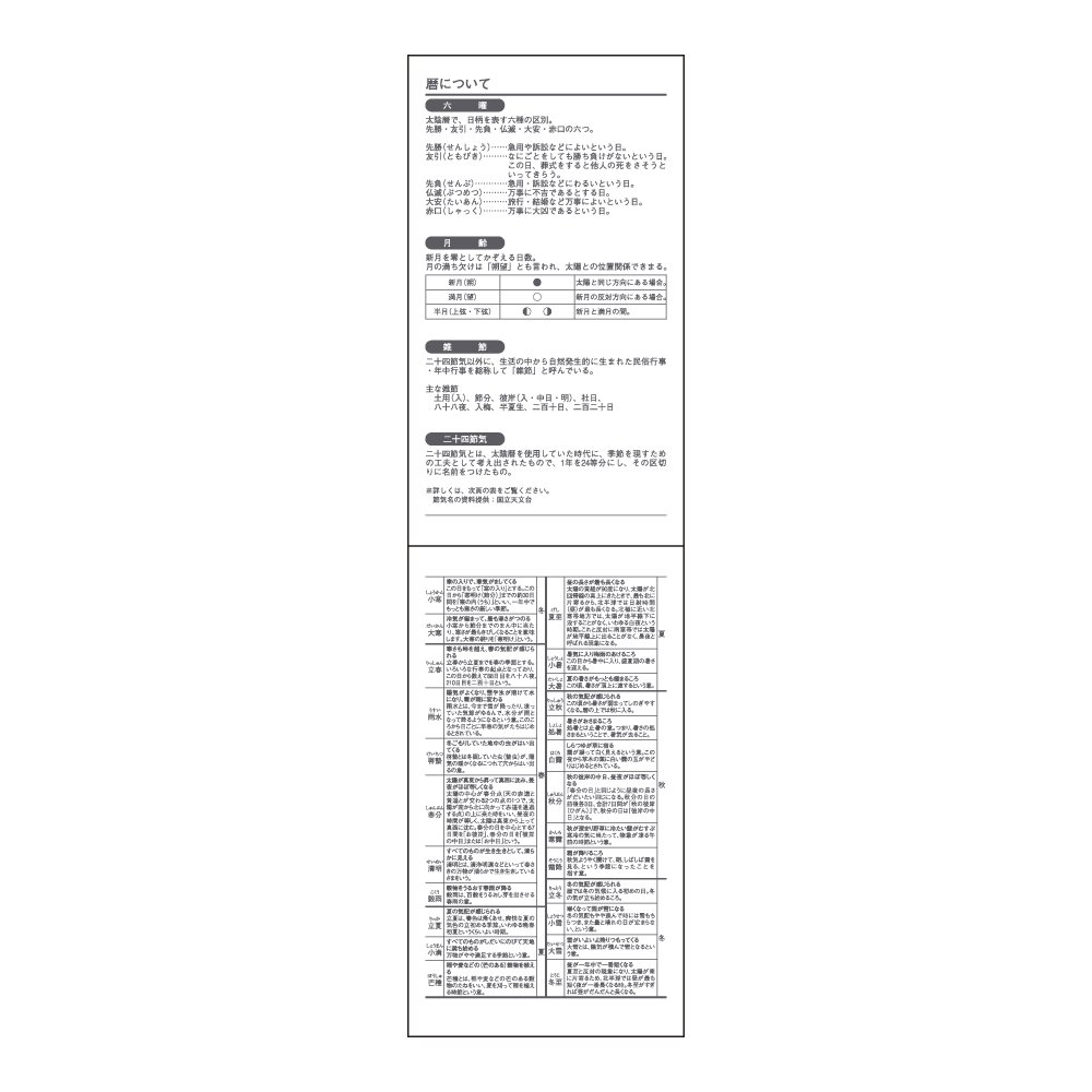 Earthquake manual / stamp tax table / time scale conversion table / paper size list / age quick table / address book / emergency contact address memo / list of counting methods / gifts etiquette / Anniversary of life / About the calendar / emergency