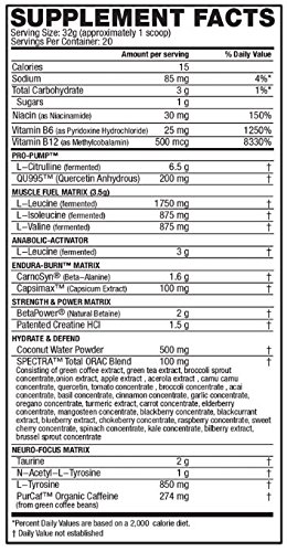 -. Feature : Premium All-In-One Pre-Workout drink that Supports Energy, Strength, Focus, Endurance and Weight Loss / 6.5 grams of Pure L-Citrulline to support Nitric Oxide, NO2, Pump / Patented Capsimax - thermogenic amplifier that helps burn fat and supports weight loss / 6.5 grams of Premium Instantized BCAAs by fermentation (Leucine, Isoleucine, valine) / Patented Creatine HCl for strength and power support