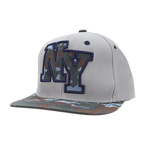 Title : Top Level Snapback Embroidered NY Camo Print Brim Unisex Flatbill Hat - Light Gray/Navy Blue