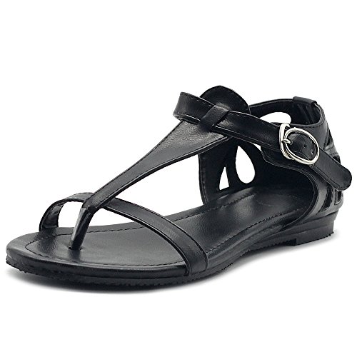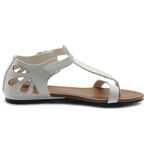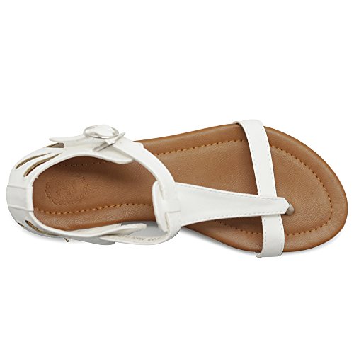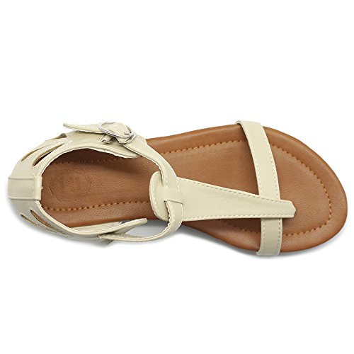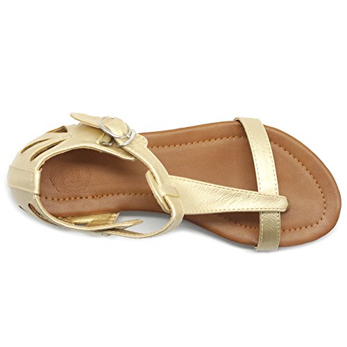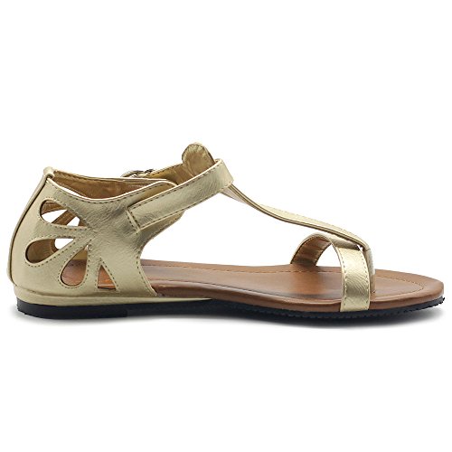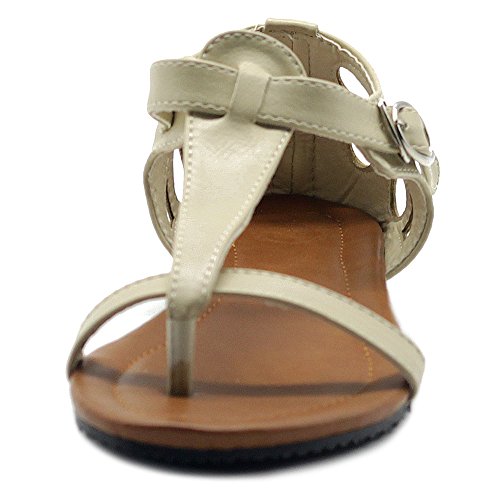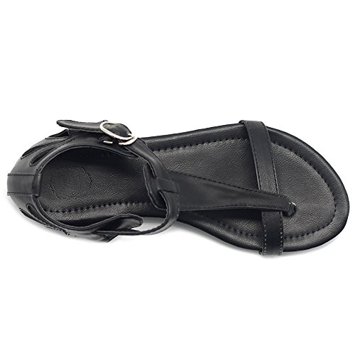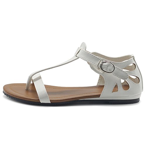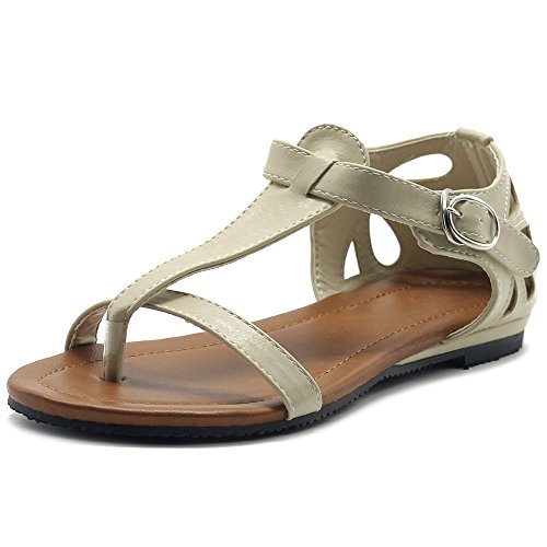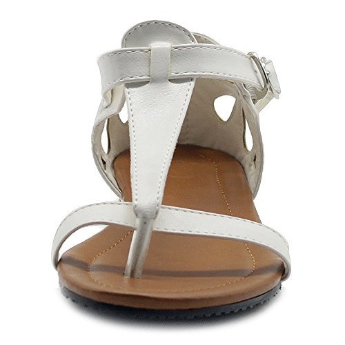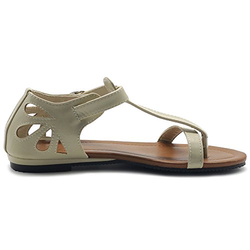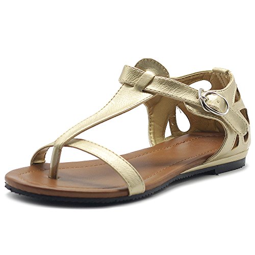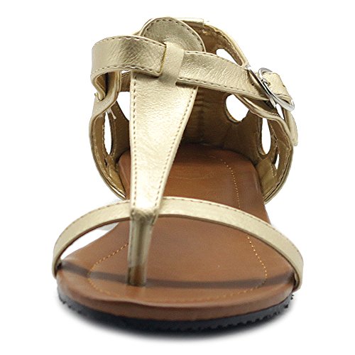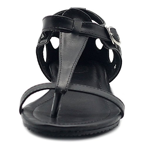 Ollio Women's Shoes Buckled T-Strap Cutout Zori Flat Sandal