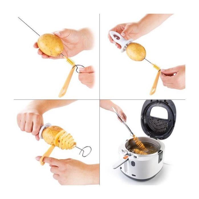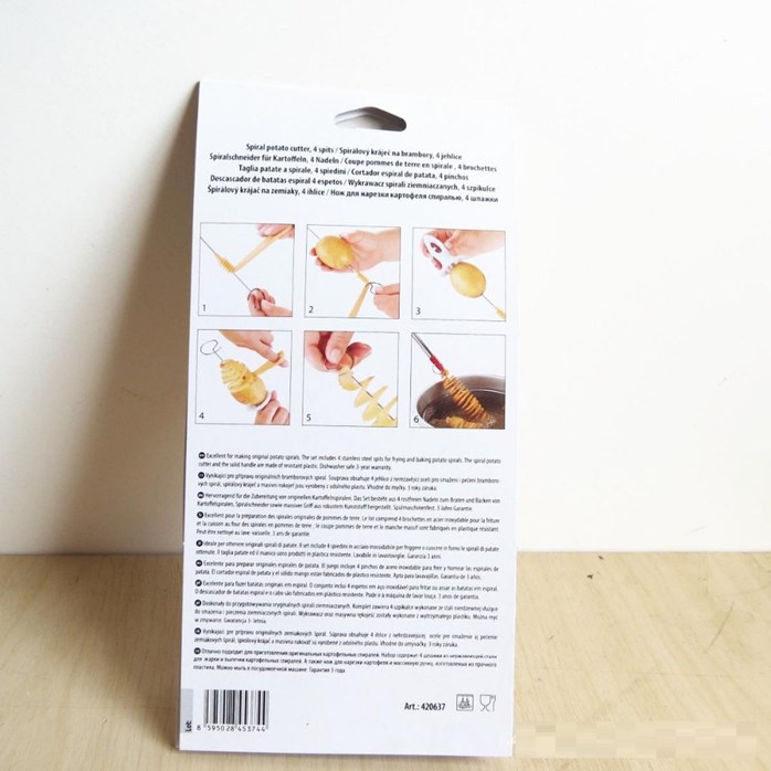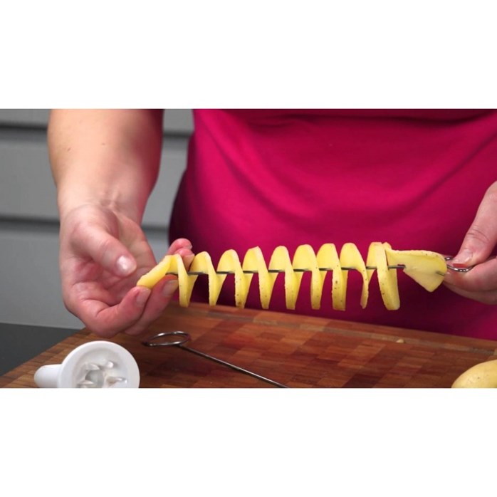 Excellent for making original potato spirals. The set includes 4 stainless steel spits for frying and baking potato spirals.