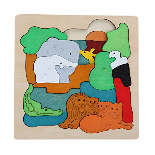 (AJIN.C)/Learning Education/Basic Life Skills Toys/DIRECT FROM USA/Multi-layer Safari Wild Animal Jigsaw Puzzle Early Educational Wooden Toys