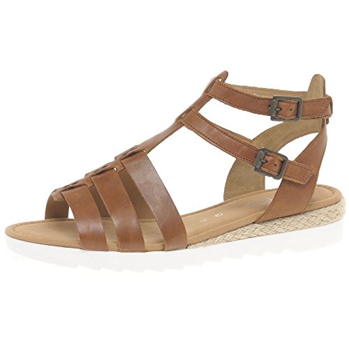 Studio : Gabor Publisher : Gabor Binding : Apparel Product Description A modern take on the classic gladiator style sandal, Gabor Felicity women's modern gladiator sandals feature either tan leather uppers with contrasting jute covered platforms, or patent metallic leather uppers with grata covered platforms. They stand on chunky cleated white thermoplastic rubber soles for excellent grip and shock absorption, and feet slip into cosy micro fibre linings and foot beds for high levels of comfort all day long. Adjustable twin buckle fastenings securely fasten feet in place, allowing for a customisable fit. 0