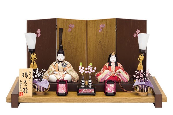 ・台座・屏風等には落ち着いた色目の雛人形セット。