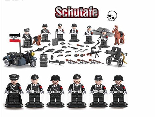 -. Title : WW2 SS German Army , Panzer Division Guard, Soldiers, Guns , Weapons,a guard doge, Machine -Gun and motorcycle set of 6 Minifugurs - Military Building Block Toy