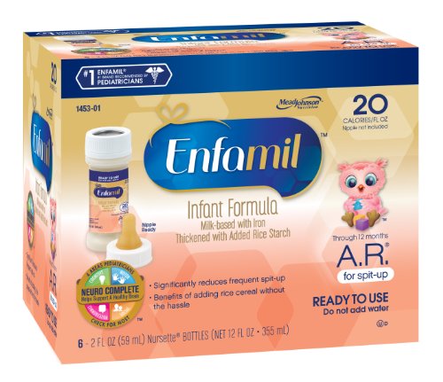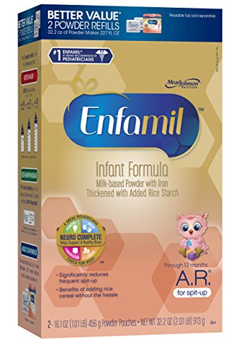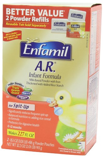 Enfamil A.R. is the #1 selling brand of infant formula for spit-up and common reflux. It meets the reflux reduction guidance of the American Academy of Pediatrics, while having complete nutrition for babies through 12 months of age. It is more nutritionally balanced—with less mess—than adding rice cereal to formula. It also has a blend of two prebiotics to help support digestive health.Feature