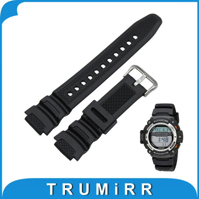 | [해외]부드러운 실리콘 고무 손목 casio sgw-300h sgw-400h 시계 밴드 남성 스테인레스 스틸 버클 스트랩 손목 벨트 팔찌 블랙 |