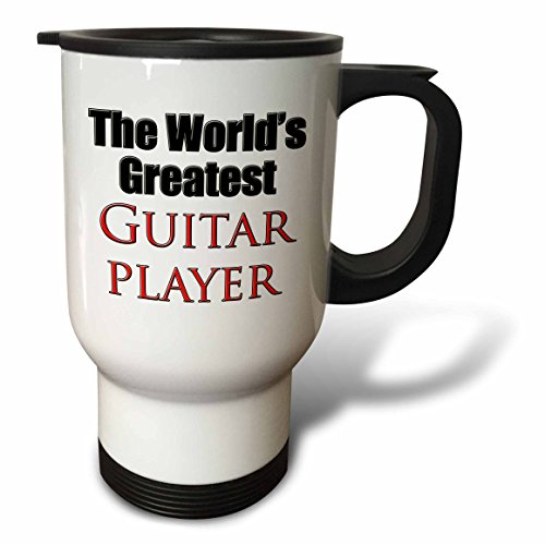 3dRose World's Greatest Guitar Player Musician Guitar Player Red Travel Mug, 14-Ounce