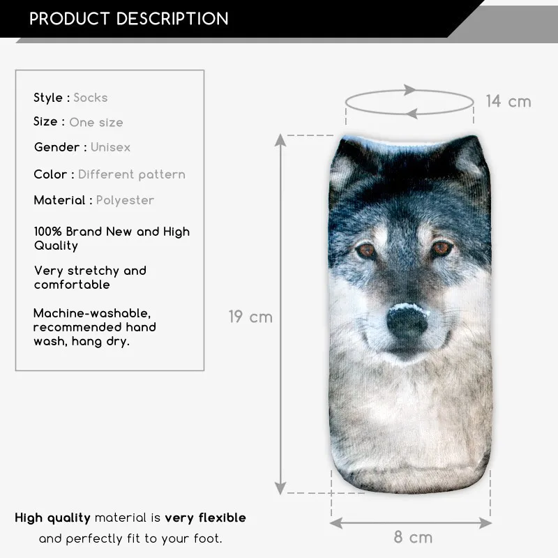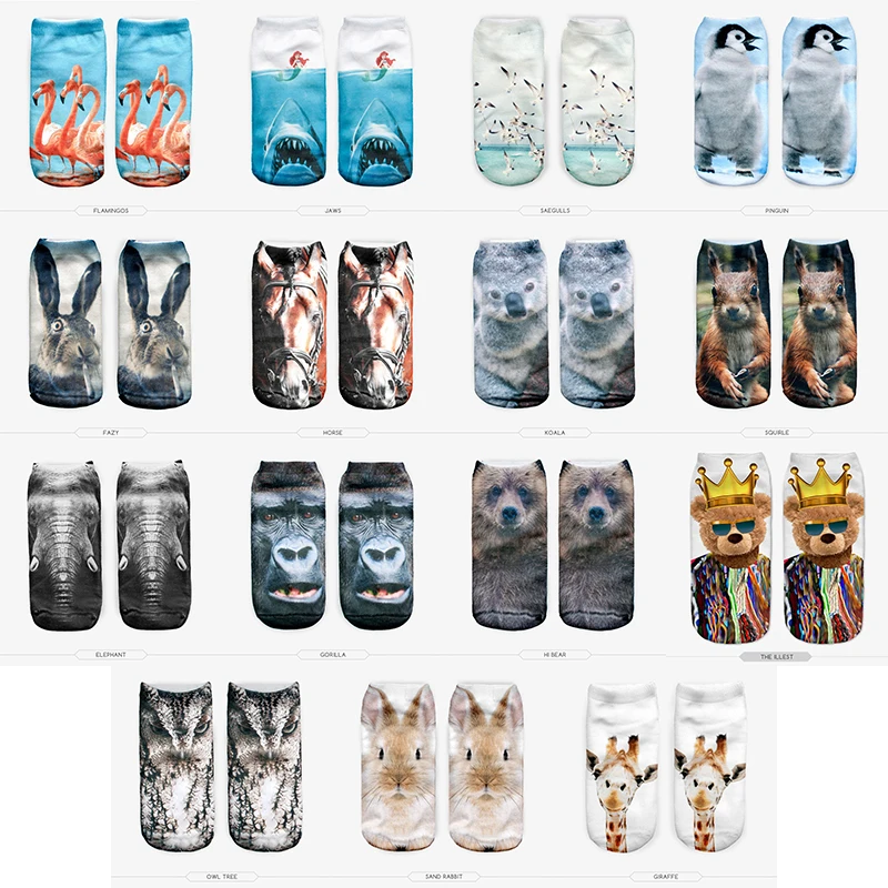 Model Number: 06190098 Animal Print socks: Sport Anklet Socks Women Socks: socks women Student socks: Women Men Socks 3D Digital Print Socks: Funny 3D Stockings Length: 19cm