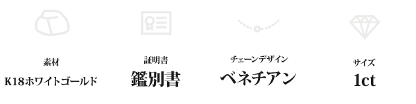 ○商品名:K18WG 1ctダイヤモンドペンダント ベネチアンチェーン(鑑別書付き)
