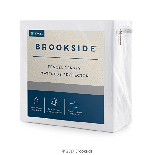 -. Brand : Brookside -. Feature : Enjoy a romantic glass of wine without ruining your mattress, even if you spill / Our proprietary allergen barrier keeps out dust mites for a clean sleep environment / Protect the top of your mattress from liquids, dust mites, and allergens / This protector is specially designed to fit mattresses up to 18 inches thick / TENCEL Jersey blend is luxuriously soft and very quiet; 10-year warranty -. Label : BROOKSIDE -. Manufacturer : BROOKSIDE -. Model : BSTJMPPARENT -. MPN : BSTJMPPARENT -. PartNumber : BSTJMPPARENT -. ProductGroup : Home -. ProductTypeName : HOME_BED_AND_BATH -. Publisher : BROOKSIDE -. Studio : BROOKSIDE -. Title : BROOKSIDE TENCEL Jersey Mattress Protector - Soft and Quiet - Hypoallergenic - Waterproof - Repels Allergens and Dust Mites - 10 Year Warranty -. Warranty : 10-year warranty guards against manufacturer defect.
