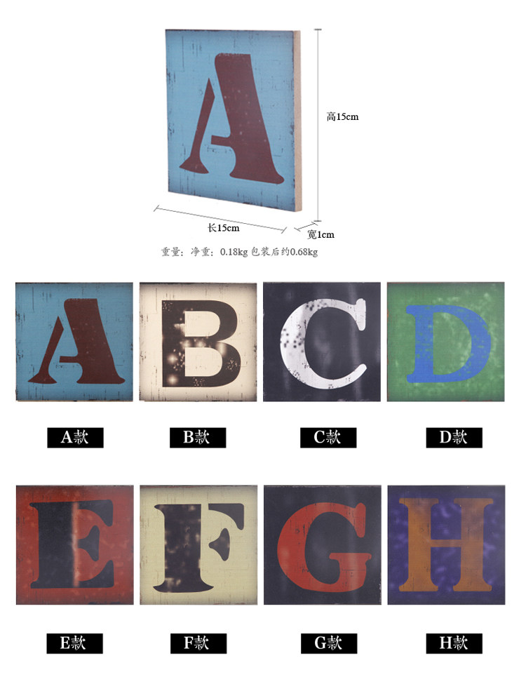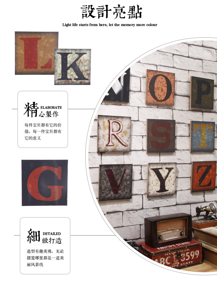 创意英文字母木板画挂画客厅壁饰墙饰咖啡厅无框画酒吧装饰品壁挂