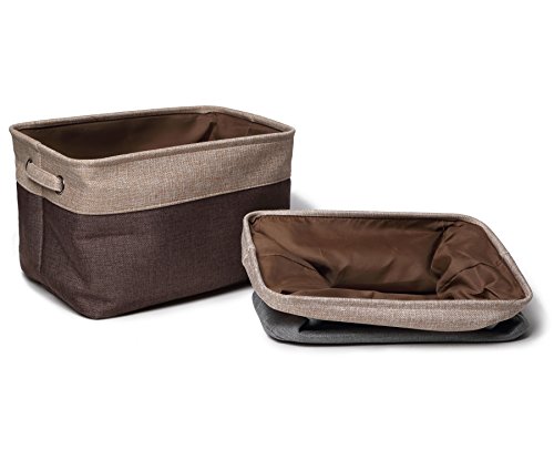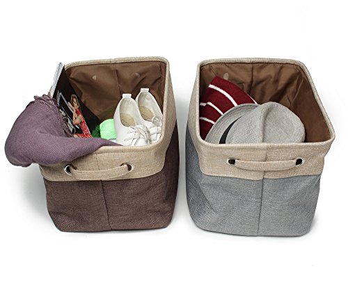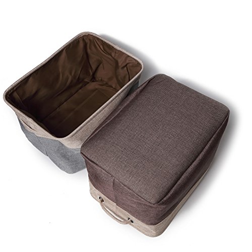 Collapsible Storage Bin Basket (2-Pack) NKTM Rectangular Foldable Canvas Fabric Tweed Storage Bin With Handles - Gray and Bown