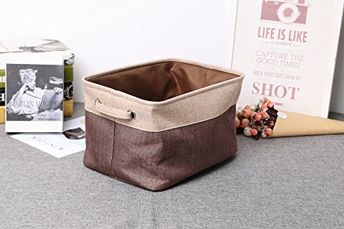 - Good Material: Cotton and linen material with Polyester layer inside. Cotton and linen material is breathable and ventilate. The fabric is thick and that allows the box to remain formed and open. The handles are soft cotton
