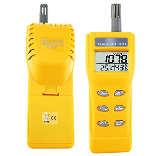 -. Feature : Triple displays of CO2 level, temperature (°C/°F) and Humidity / Stable NDIR sensor for CO2 detection / Sound warning alarm for CO2 high level risk / Resolution : 1ppm,0.1°C/°F, 0.1%RH / Measuring Range:CO2: 0~9999ppm,(2001~9999 out of scale)