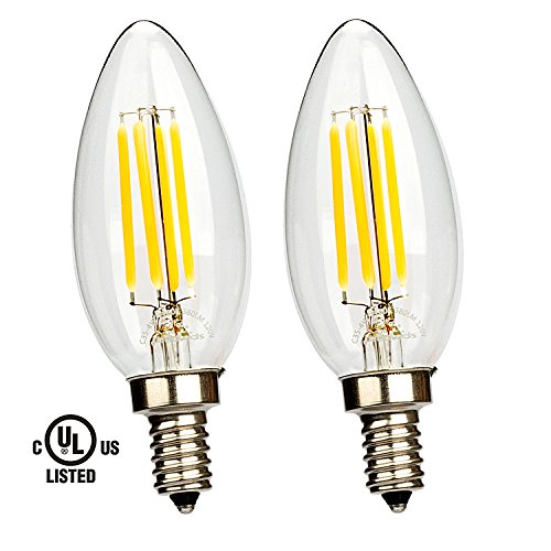Leadleds 4W LED Filament Candelabra Bulb, E12 base 2700K Warm White 380 Lumens B11 Candle LED Bulb, 40W Equivalent LED Chandelier Bulb UL Listed, 2-Pack