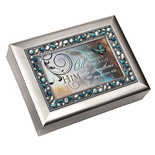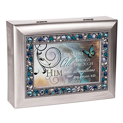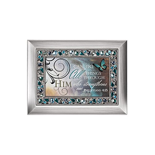 "I Can Do All Things Through Him" Philippians 4:13 Religious Decorative Jewel Lid Musical Music Jewelry Box Plays On Eagle's Wings