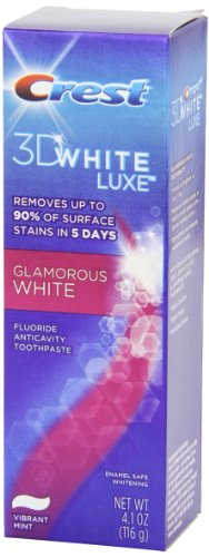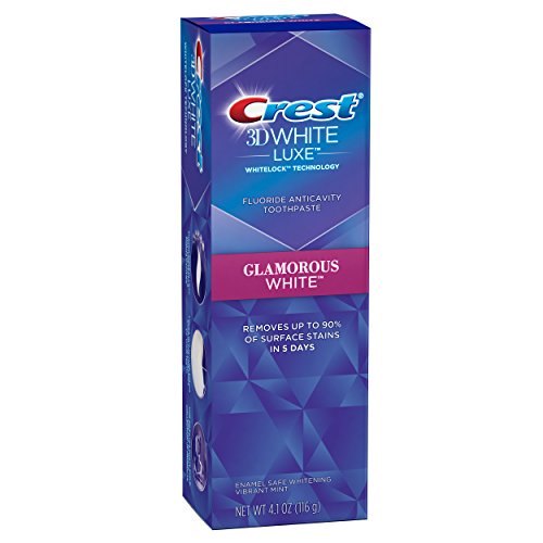 Glamorize your smile daily. Make your smile the first step in your morning beauty routine with Crest 3D White Luxe Glamorous White toothpaste. Designed to provide a radiant shine, 3D White Luxe Glamorous White gently, but effectively takes your smile from dull to dazzling. That's because it not only removes up to 90% of surface stains, but the unique Whitelock Technology actually prevents new stains from forming - even in the microfine lines of your teeth. www.crest.comFeature