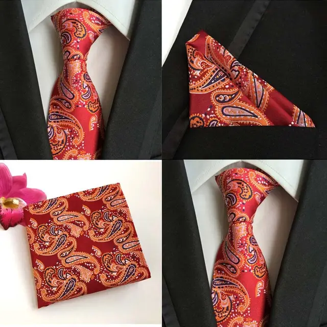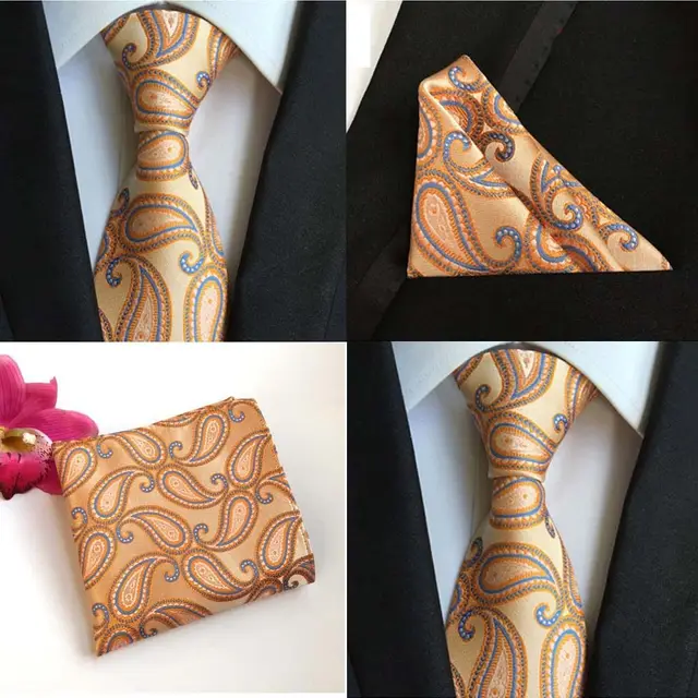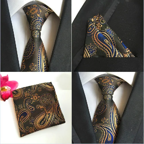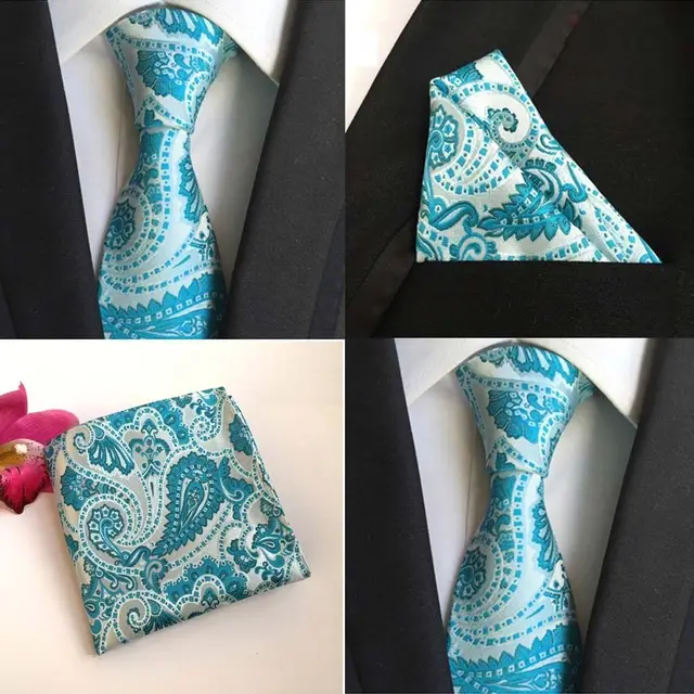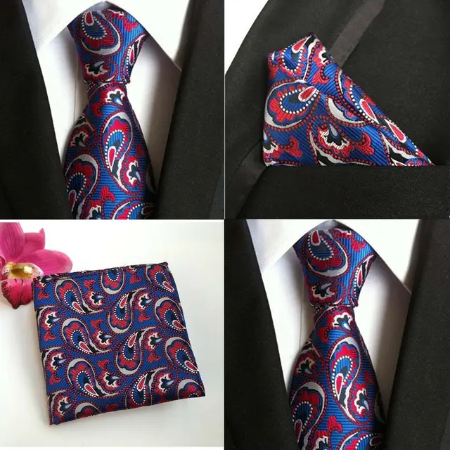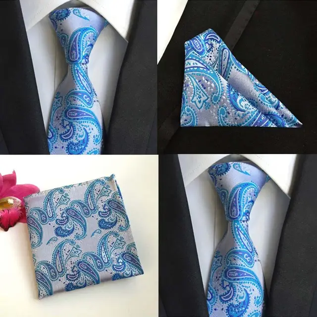 | [해외]공장 클래식 남성 100% 실크 웨딩 파티 비즈니스 넥타이 손수건 세트 10 스타일 페이즐리 포켓 광장 넥타이 손수건 넥타이 |