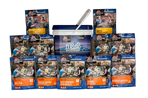Mountain House serves up an easily portable, great tasting combo of their "classic" entrees including a breakfast, in a super lightweight reusable bucket that can be efficiently stored and organized for your emergency food supply, camping kit or long-term food storage.Feature