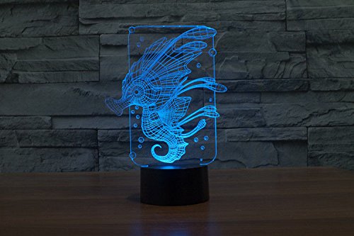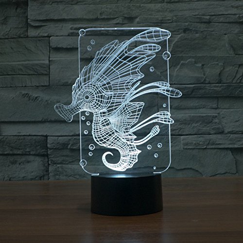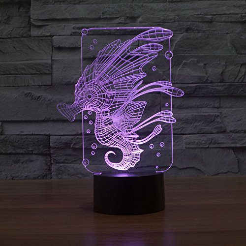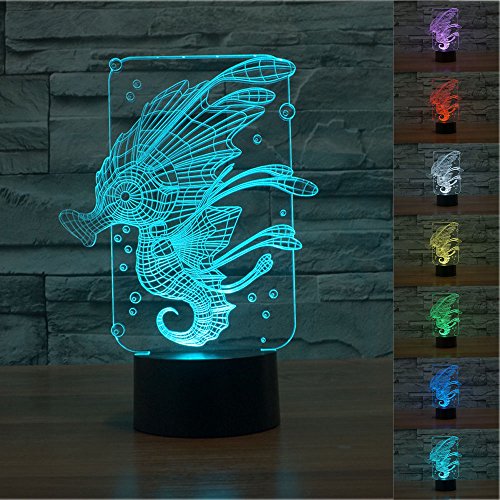 SUPERNIUDB 3D Novelty Sea Horse Night Light 7 Color Change LED Table Lamp Xmas Toy Gift